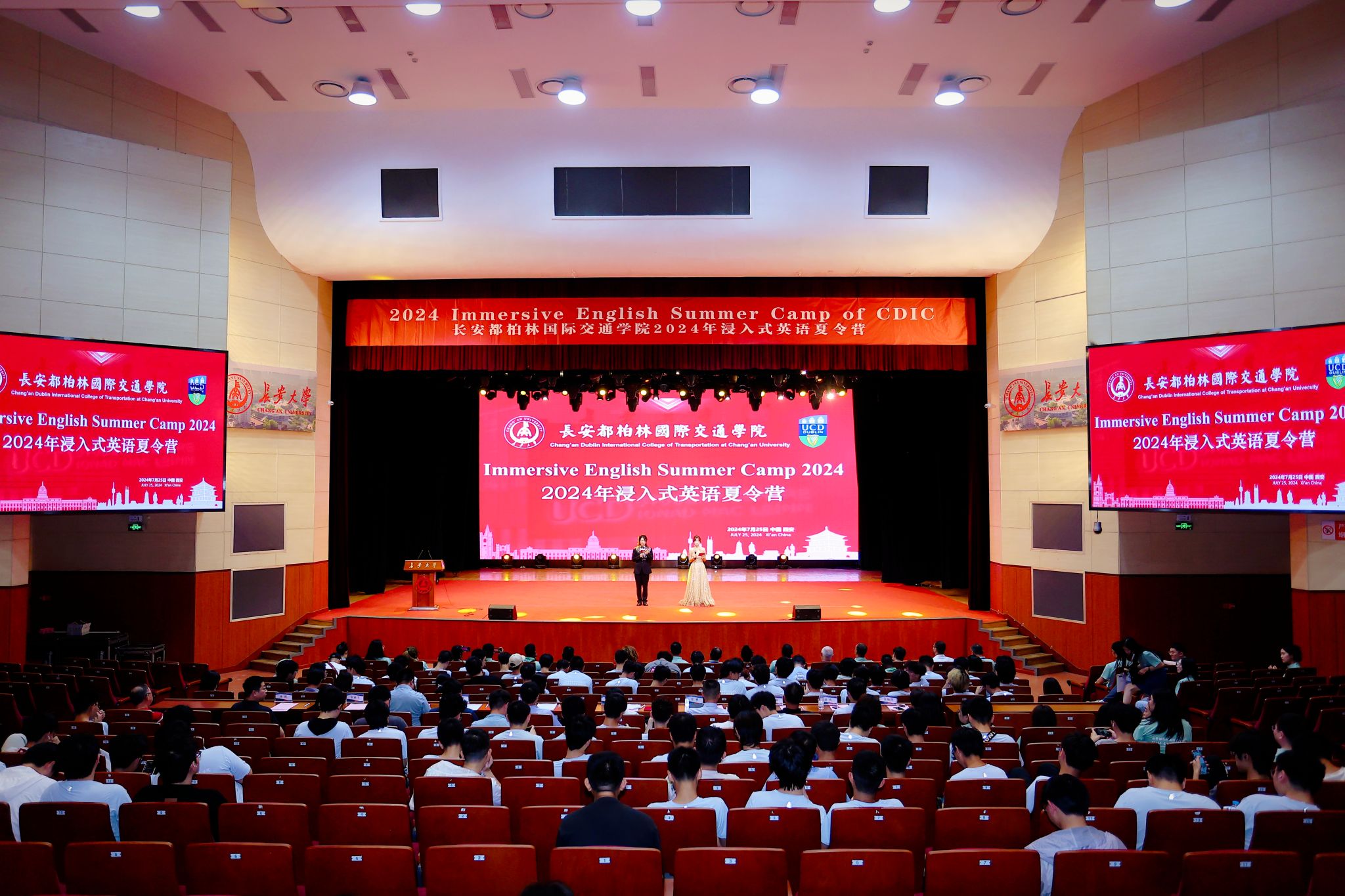 7月25日下午,長安都柏林國際交通學院2024年浸入式英語夏令營閉幕式暨匯報演出在北校區(qū)長安文化藝術(shù)中心大禮堂舉行。長安大學黨委副書記、副校長彪曉紅出席閉幕式,學校學生工作部、校團委、后勤管理處、保衛(wèi)處等單位負責人、學院黨政領導及全體教職工、夏令營外籍教師、國際志愿者、2023級學生參加本次活動。