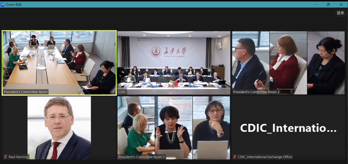 我校教務處、國際合作處、計劃財務處、長安都柏林國際交通學院主要負責人,都柏林大學財務部和工學院負責人參加會議。