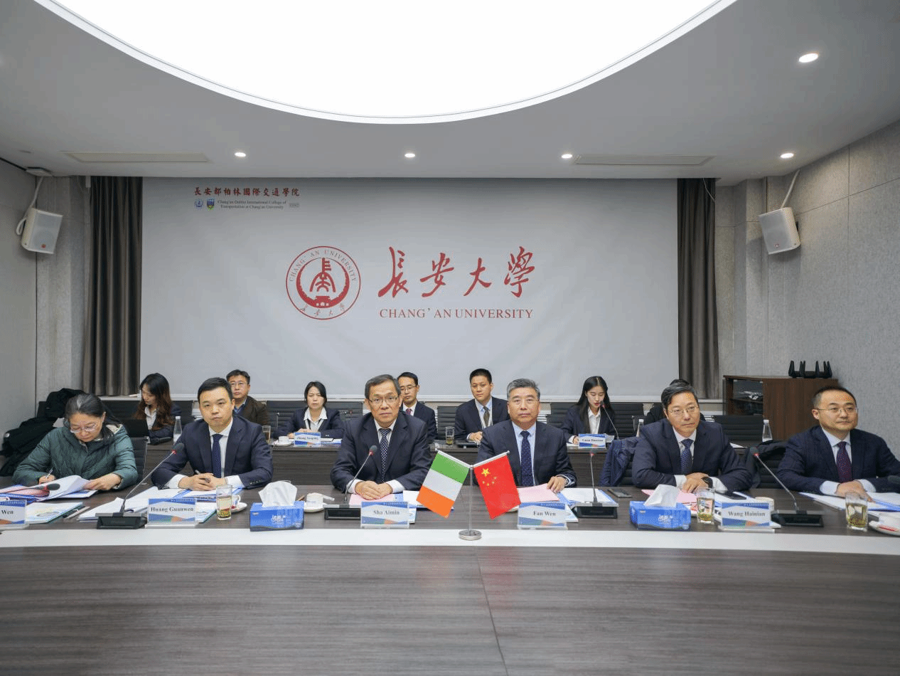 12月15日,長安大學長安都柏林國際交通學院中外合作辦學聯合管理委員會(以下簡稱“聯合管理委員會”)2023年度會議召開。我校校長、聯合管理委員會主任沙愛民,副校長范文,愛爾蘭都柏林大學校長、聯合管理委員會副主任Orla Feely,副校長Dolores O'Riordan,長安都柏林國際交通學院教務長Paul Fanning出席會議。