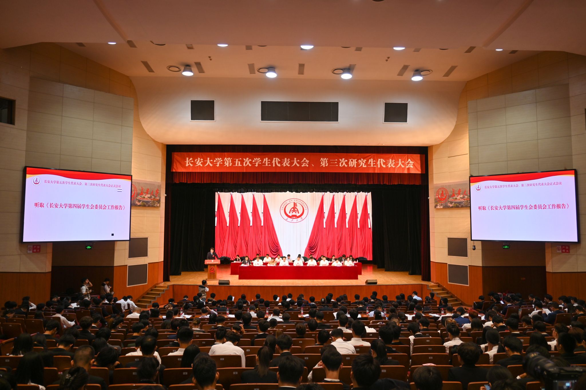 開幕會上,黎開誼和相關部門負責人為2022年度長安大學優秀學生會、優秀研究生會頒獎。陳星宇同學代表第四屆學生會委員會向大會作工作報告。于曉虎同學代表第二屆研究生會委員會向大會作工作報告。大會全面總結了校學生會、研究生會近年來的工作,研究確定未來一年的工作任務,選舉產生了長安大學第五屆學生會委員會、第三屆研究生會委員會以及新一任主席團。