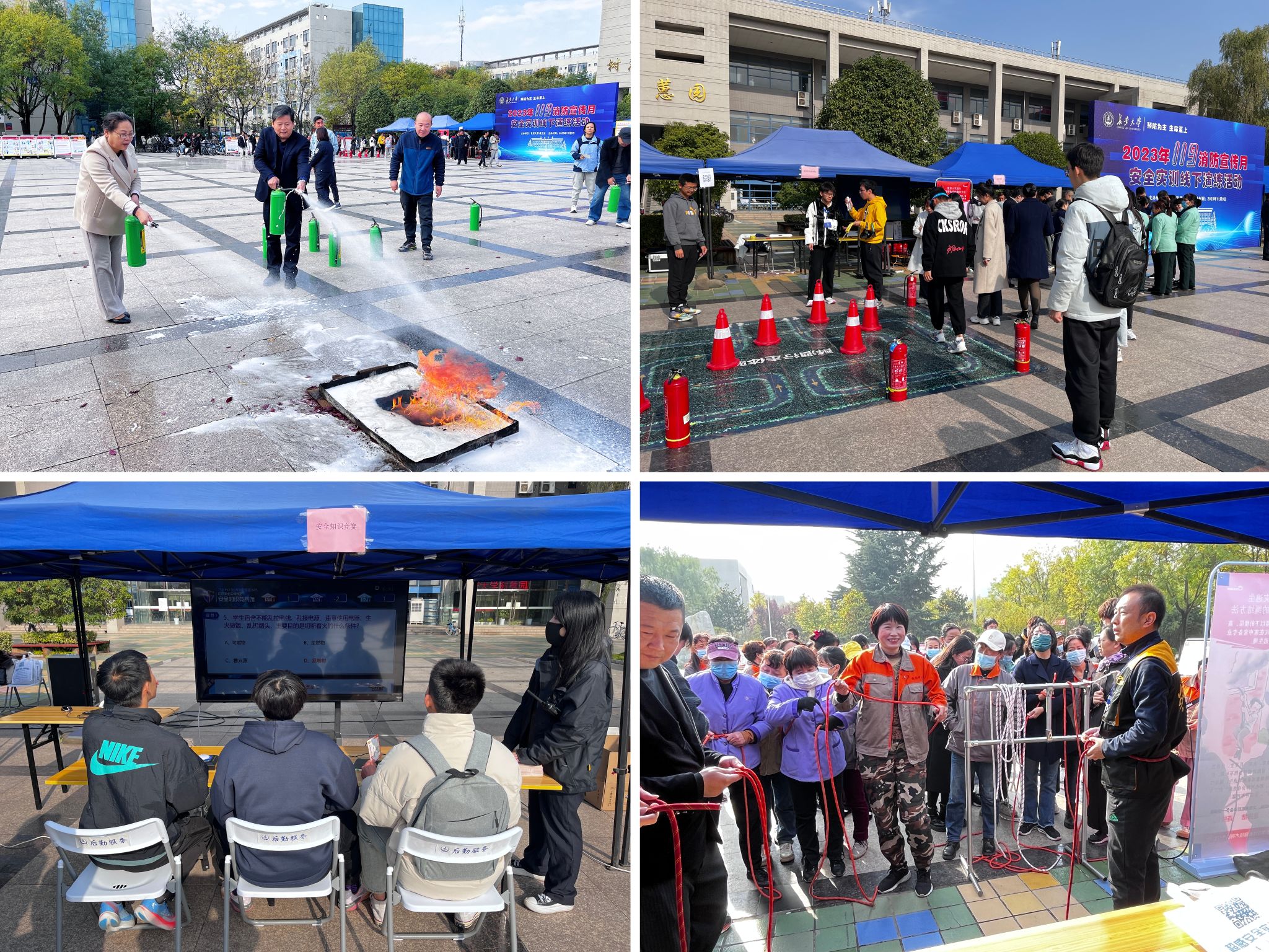 本次線下演練活動設(shè)置了防火安全逃生VR體驗、安全繩結(jié)、安全知識競賽、眩暈行走體驗、模擬滅火實訓(xùn)五個主題模塊,旨在通過寓教于樂的方式,讓師生在輕松愉悅的游戲體驗中掌握撲救初起火災(zāi)和火場疏散逃生的基本方法。活動整體實用性強(qiáng),趣味性高,受到現(xiàn)場師生的一致好評。