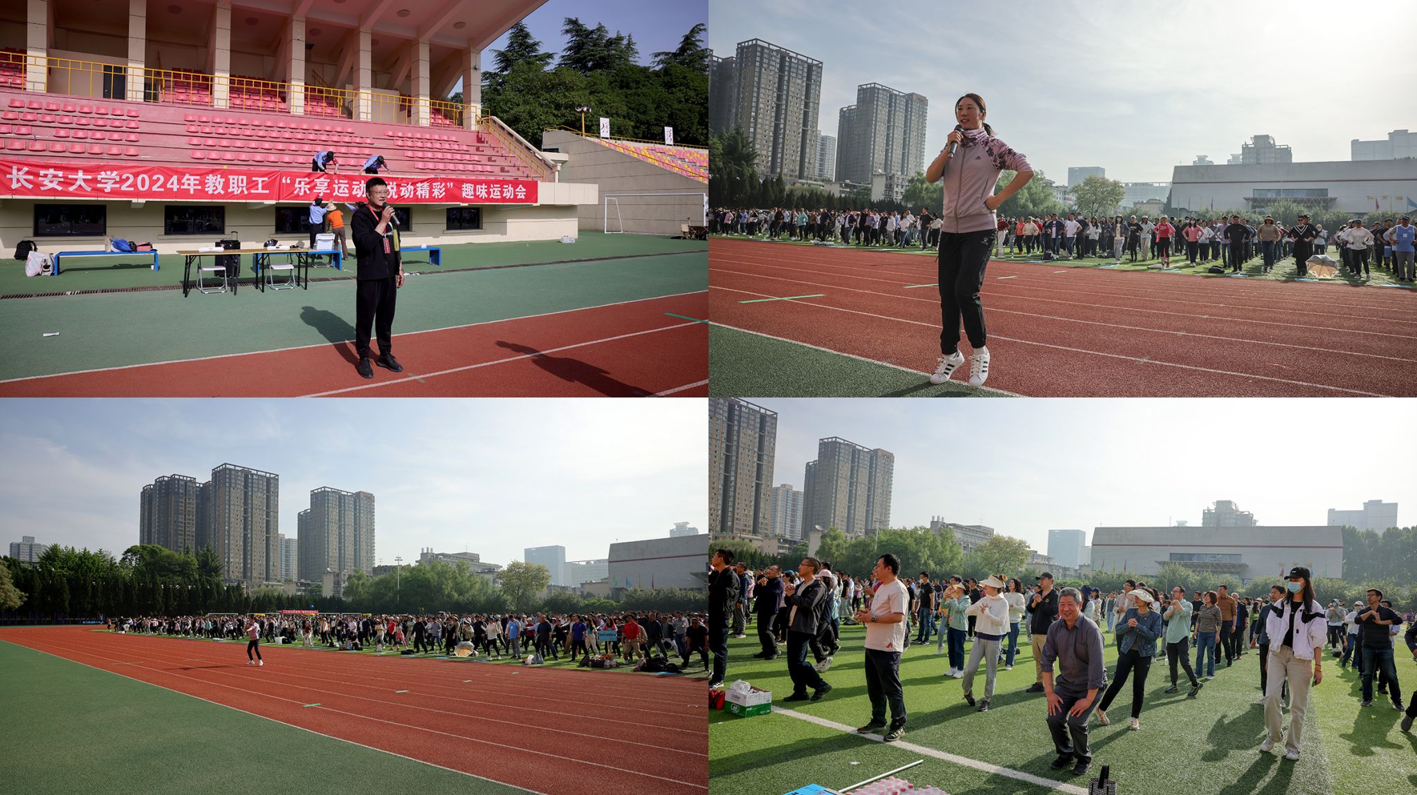 4月18日上午,長安大學(xué)2024年“樂享運動 悅動精彩”教職工趣味運動會在校本部北院教學(xué)區(qū)田徑運動場舉行。來自全校26個分會的1300余名教職工參加比賽,職能部門、直屬單位負(fù)責(zé)人和部分學(xué)院黨政領(lǐng)導(dǎo)觀賽,為運動員們加油助威。活動由工會副主席范婷主持。