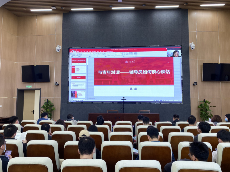 來自各院(系)30余名學辦主任和團委書記到場聆聽,100余名輔導員通過在線會議平臺參加培訓。