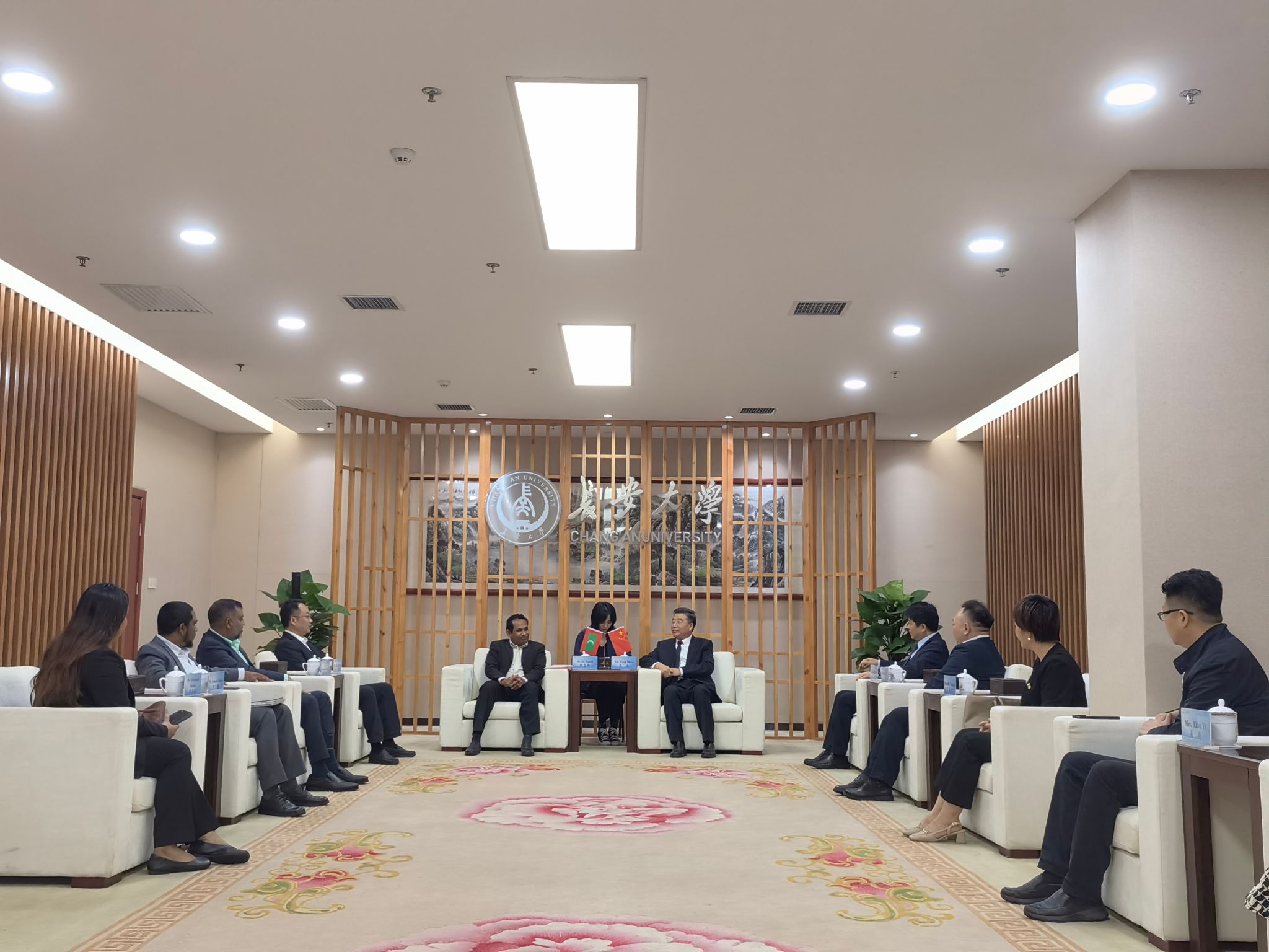 當天下午,還召開了長安大學-馬爾代夫維拉學院校際合作座談會。ALI NAJEEB一行,我校經濟與管理學院、電子與控制工程學院、信息工程學院、外國語學院、國際教育學院等單位負責人與教師代表參會。與會人員就工商管理、自動化、計算機科學與技術、英語等專業共建達成初步共識,并就教師國際化水平提升、學生聯合培養等展開討論。