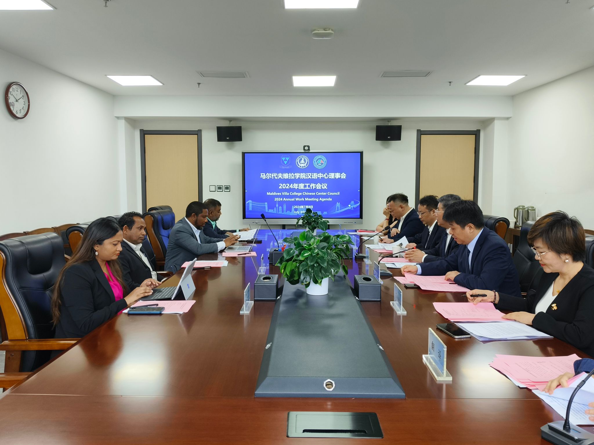 7月8日上午,馬爾代夫維拉學院漢語中心理事會2024年度工作會議在北校區召開。我校副校長范文、漢語中心中方主任馬越晗,馬爾代夫維拉學院常務副校長ALI NAJEEB、副校長ABDUL MUNNIM MOHAMED MANIK、漢語中心馬方主任AMZATH AHMED、國際關系部主任FATHIMATH SHIFAZA,湖南大眾傳媒學院黨委副書記謝景偉、國際交流處處長王濤、副處長肖毅等出席會議。我校國際教育學院院長張偉主持會議。