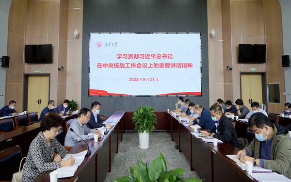 徐引正領學了習近平總書記在中央統戰工作會議上的重要講話精神。他強調,習近平總書記在中央統戰工作會議上的重要講話,闡明了新時代統戰工作一系列重大理論和實踐問題,為做好新時代統戰工作指明了前進方向、提供了根本遵循。要完整全面準確理解習近平總書記關于做好新時代統一戰線工作的重要思想,準確把握新時代愛國統一戰線的歷史方位和重要使命,切實增強做好新時代統一戰線工作的政治自覺、思想自覺和行動自覺。要學習貫徹落實好中央統戰工作會議精神,加強黨對統戰工作的全面領導,充分發揮學校統一戰線工作領導小組作用,加強黨外知識分子思想政治引領,引導統戰成員積極投身學校“雙一流”建設,助力學校高質量發展。要以鑄牢中華民族共同體意識為主線,堅持為黨育人、為國育才,全面落實立德樹人根本任務,培育堪當民族復興大任的時代新人。要進一步加強黨外代表人士和黨外干部隊伍建設,為統一戰線各領域輸送優秀人才,引導廣大統戰成員圍繞學校改革發展大局,積極建言獻策,廣泛凝聚共識、凝聚人心、凝聚智慧、凝聚力量,形成大統戰工作格局,不斷鞏固和發展新時代愛國統一戰線,以實際行動迎接黨的二十大勝利召開。