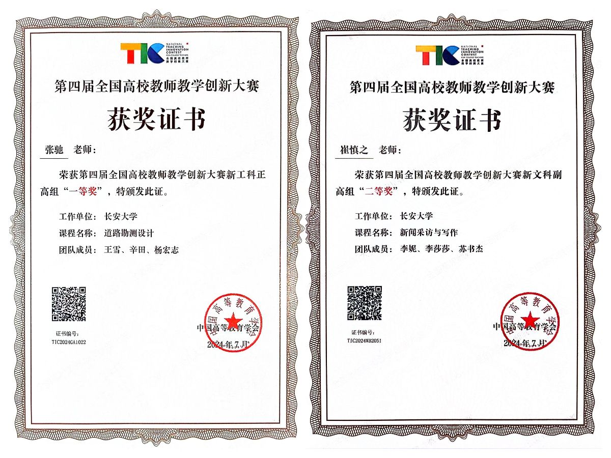 7月27日至31日,由教育部高等教育司指導、中國高等教育學會主辦的第四屆全國高校教師教學創新大賽全國賽在成都舉辦。我校公路學院張馳教授榮獲新工科組一等獎,人文學院崔慎之副教授榮獲新文科組二等獎。