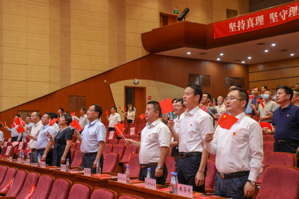 這是一次階段性成效的總結表彰大會,也是一次再動員、再鼓勁的大會。從歷史走來,我們攜手共進建黨百年的奮斗輝煌,向未來出發,我們齊心共譜七秩長大的嶄新篇章。讓我們高舉中國特色社會主義偉大旗幟,以習近平新時代中國特色社會主義思想為指引,在喜迎建黨100周年中加快世界一流大學和一流學科的建設步伐,在中華民族偉大復興的壯闊征程中擘畫新時代的長大藍圖!