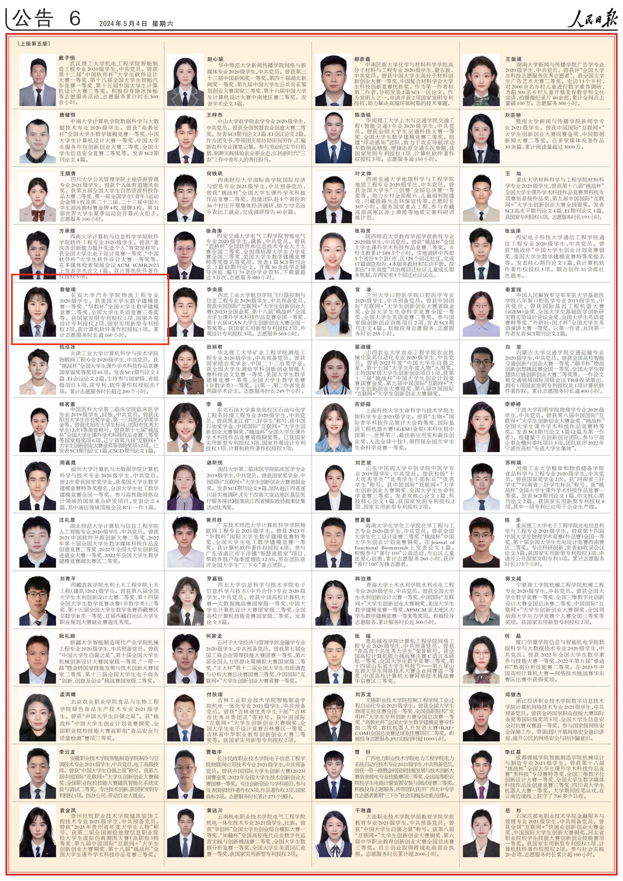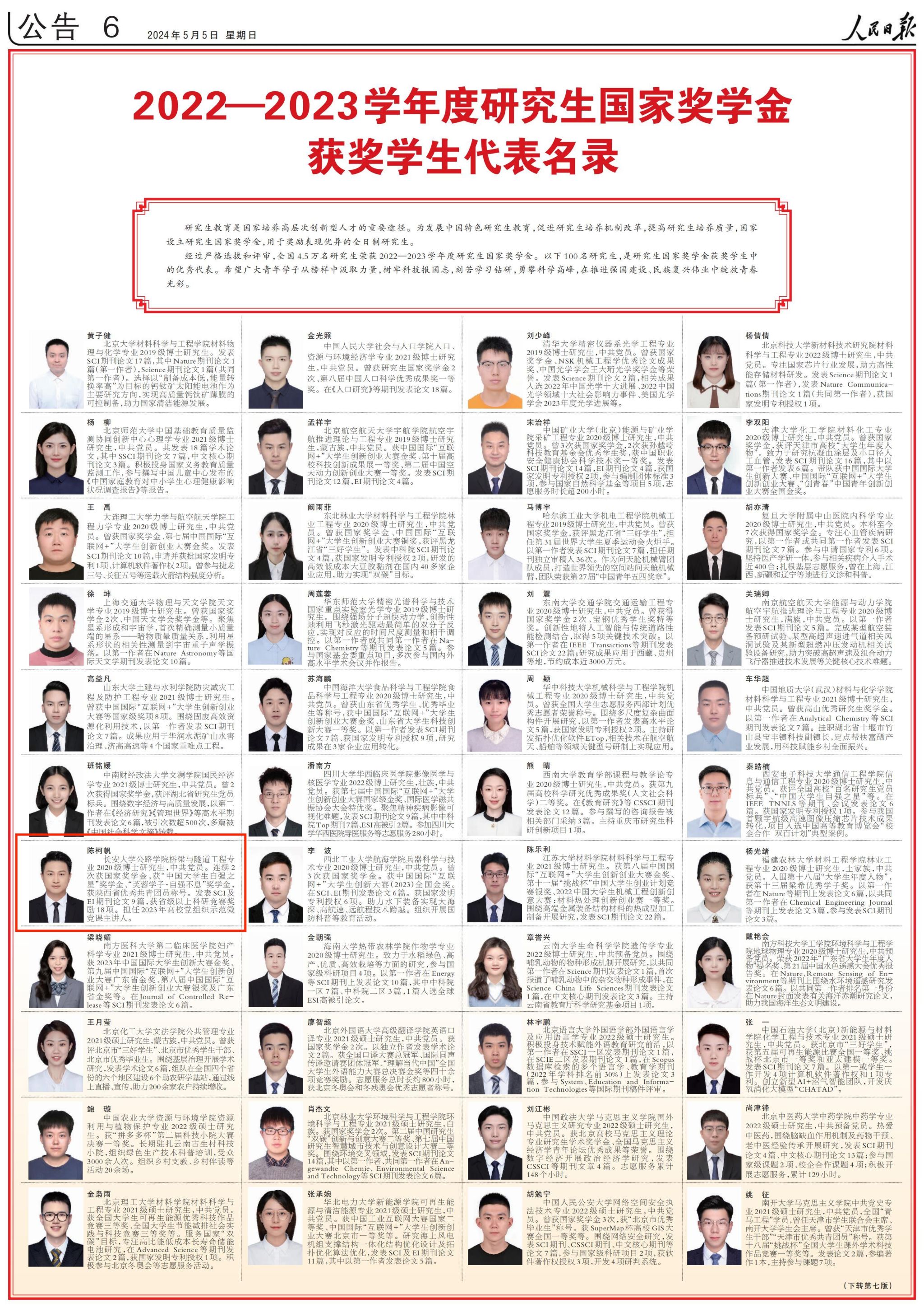近日,《人民日?qǐng)?bào)》專版刊登《2022—2023學(xué)年度本專科生國家獎(jiǎng)學(xué)金獲獎(jiǎng)學(xué)生代表名錄》《2022—2023學(xué)年度研究生國家獎(jiǎng)學(xué)金獲獎(jiǎng)學(xué)生代表名錄》,我校汽車學(xué)院物流工程專業(yè)2020級(jí)本科生黎敏琦、公路學(xué)院橋梁與隧道工程專業(yè)2020級(jí)博士研究生陳柯帆入選名錄,這是我校本科生近五年連續(xù)榮登《人民日?qǐng)?bào)》本專科生國家獎(jiǎng)學(xué)金獲獎(jiǎng)學(xué)生代表名錄,研究生連續(xù)兩年入選研究生國家獎(jiǎng)學(xué)金獲獎(jiǎng)學(xué)生代表名錄。