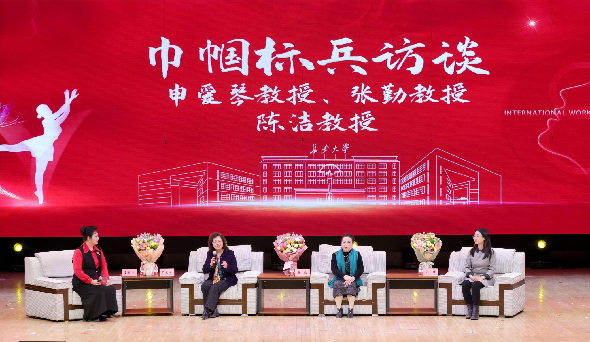 活動還特邀請學校巾幗標兵代表申愛琴教授、張勤教授及陳潔教授三位女教師代表參加巾幗標兵訪談,三位老師從學校建設發展、學科專業建設、青年教師培養、學生教育培養、社會服務貢獻等方面分享了為黨育人、為國育才的心得體會,并向廣大女教職工們獻上節日的祝福。訪談由陜西廣播電視臺主持人馮歆主持。