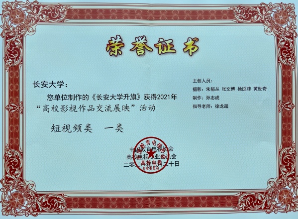 本次評選共收到來自全國百所高校報送的1008部影視作品。學校電視臺制作的《長安大學升旗》獲得短視頻類一等獎;《大道同行·七秩弦歌》《長安大學校史館開館》分別獲學校形象宣傳片類和短視頻類二等獎;校慶70周年作品《長大記憶》和考研紀錄片《路》獲得紀錄片類三等獎;《強國一代有我在》獲得學校形象宣傳片類三等獎;《長安大學紅毯》《長大印象》獲得短視頻類三等獎。