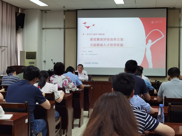 6月8日下午,副校長趙祥模在南校區(qū)交通科技大廈601會(huì)議室講授黨史學(xué)習(xí)教育專題黨課。專題黨課由教育研究與評(píng)估中心主任趙現(xiàn)偉主持。