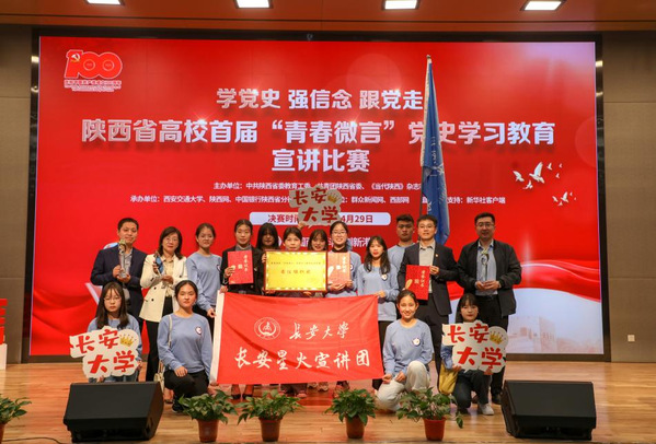4月29日上午,由中共陜西省委教育工委、共青團(tuán)陜西省委、《當(dāng)代陜西》雜志社主辦的陜西省高校首屆“青春微言”黨史學(xué)習(xí)教育宣講比賽決賽舉行。來自陜西高校青年愛國奮斗宣講聯(lián)盟的12所高校24名選手參加,經(jīng)過激烈的角逐,我校長安星火宣講團(tuán)成員人文學(xué)院本科生黃藝南獲一等獎(jiǎng)及最佳人氣獎(jiǎng),馬克思主義學(xué)院本科生胡冰冰獲三等獎(jiǎng),長安星火宣講團(tuán)指導(dǎo)教師楊帆獲最佳指導(dǎo)老師獎(jiǎng),我校獲最佳組織獎(jiǎng)。