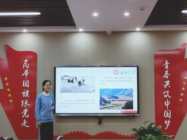 比賽中,黃藝南通過聚焦中國第一個(gè)農(nóng)村黨支部誕生地的百年滄桑巨變和其創(chuàng)建者弓仲韜的人生經(jīng)歷,解讀百年答卷中的紅色基因,感受百年征程里的初心使命。胡冰冰由青海西海固的發(fā)展變化引入主旨,通過脫貧攻堅(jiān)精神深刻展示中國共產(chǎn)黨為什么能的時(shí)代命題。