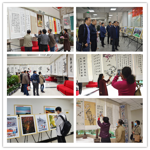 開幕式后,與會領(lǐng)導(dǎo)和嘉賓觀看了展出的各類書畫和攝影作品。此次展出將持續(xù)到4月23日,歡迎廣大校友、師生和離退休老同志參觀。