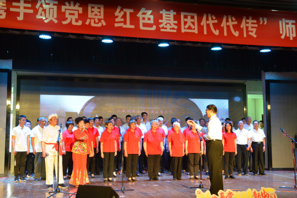 本次“老少攜手頌黨恩,紅色基因代代傳”師生合唱、詩歌誦讀活動500余人參加,在前期排練中,許多80歲以上高齡的老同志克服各種困難,強烈表示“想要和青年學生們再奮斗一回”的意愿,堅持參加合唱。九旬高齡的宮同倫老師等老師,為了給青年同志做榜樣,聲音高亢,充滿真情,令現場觀眾感慨與感動。學生黨員利用課余時間積極和老同志們練習排練,為了保證老同志們的出行安全,還專門安排了“一對一”專人負責,充分體現了青年學生敬老、尊老、愛老的良好品質。