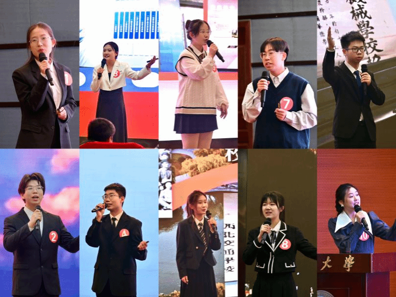 經過院系初賽和學校復賽的激烈角逐,最終有來自9個學院的10名新生入圍決賽。比賽現場,選手們緊扣主題,用飽滿的熱情和豐富的語言,輔以配樂和視頻,講述我校的輝煌發展歷程和建設成就,追憶各學科先輩執著求索、報效祖國的崢嶸歲月,感悟弘毅明德、篤學創新的校訓精神,明確新時代長大學子應有的使命與擔當。
