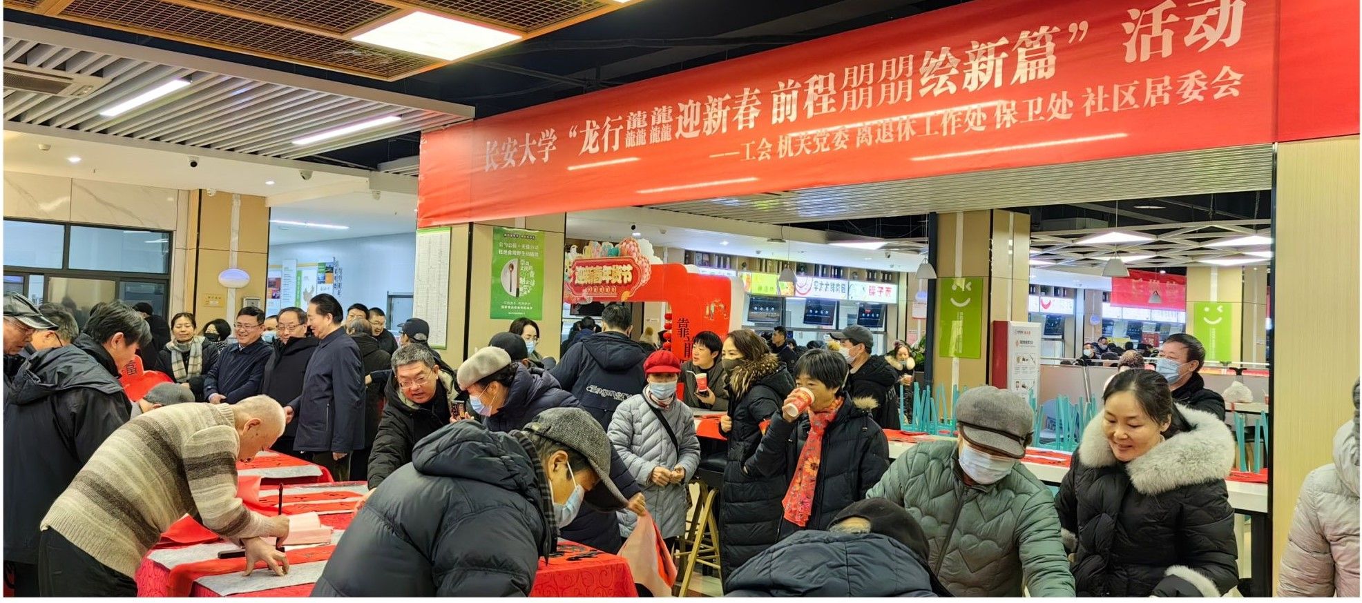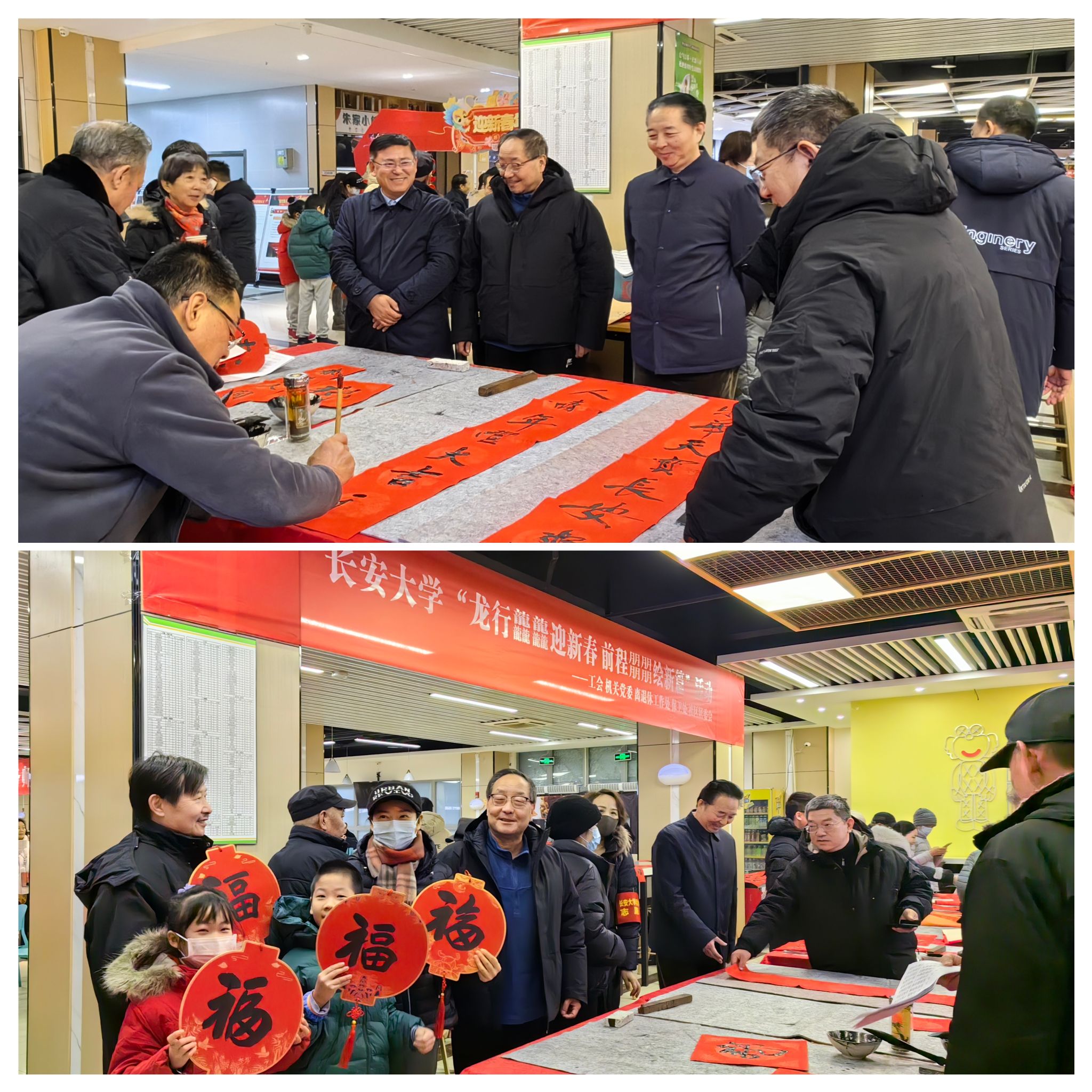 為深入學習貫徹黨的二十大精神,弘揚中華優秀傳統文化,豐富校園文化生活,營造歡樂祥和平安的節日氛圍,2月2日上午,工會、機關黨委、離退休工作處、保衛處、社區居委會聯合組織開展“龍行龘龘迎新春 前程朤朤繪新篇”活動,校黨委副書記徐引正、副校長朱杰君蒞臨活動現場。