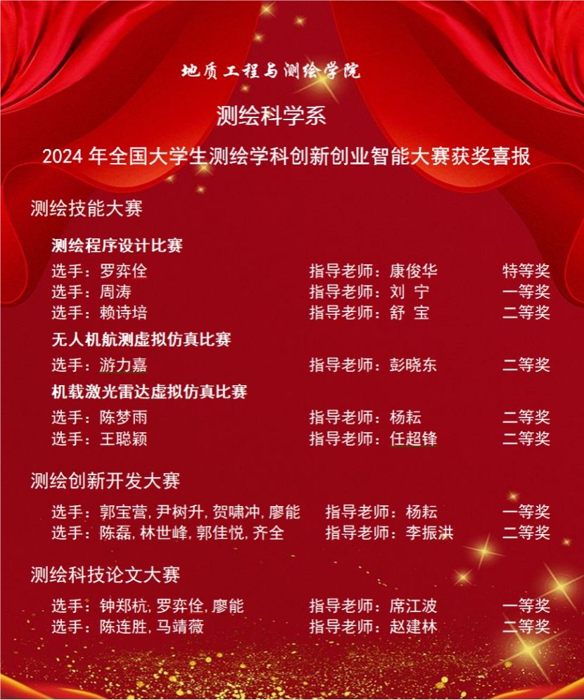 7月31日,教育部高等學(xué)校測繪專業(yè)教學(xué)指導(dǎo)委員會和中國測繪學(xué)會教育委員會(以下簡稱“兩委會”)公布“2024全國大學(xué)生測繪學(xué)科創(chuàng)新創(chuàng)業(yè)智能大賽”的獲獎名單。長安大學(xué)取得了特等獎1項,一等獎3項,二等獎6項的好成績。