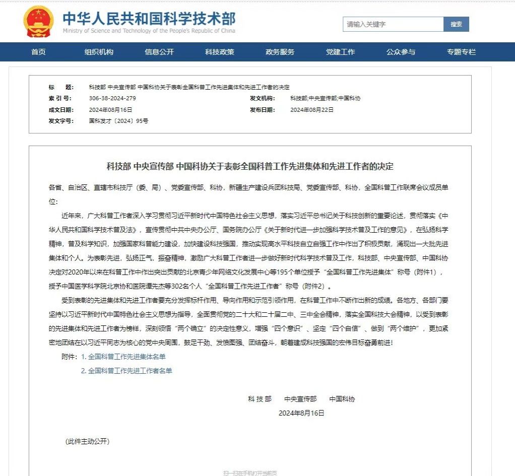 1996年起,為表彰先進、弘揚正氣、振奮精神,激勵廣大科普工作者進一步做好新時代科學技術普及工作,科技部會同中央宣傳部、中國科協,每3年開展一次全國科普工作先進集體和先進工作者評選表彰工作。旨在表彰在弘揚科學精神,普及科學知識,加強國家科普能力建設,加快建設科技強國,推動實現高水平科技自立自強工作中作出積極貢獻的先進集體和個人。