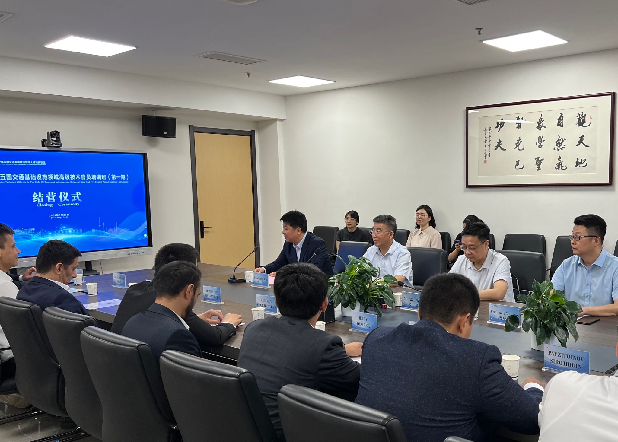 5月27日上午,中國-中亞五國交通基礎設施領域高級技術官員培訓班(第一期)結營儀式在北校區舉辦。我校副校長范文、陜西省教育廳對外合作交流處處長文通、中國-中亞五國交通基礎建設領域人才培養聯盟秘書處辦公室相關負責人楊望暾出席儀式。烏茲別克斯坦國家規劃設計院參訓學員、國際教育學院師生代表參加會議。國際教育學院院長、中國-中亞五國交通基礎建設領域人才培養聯盟秘書處辦公室主任張偉主持結營儀式。