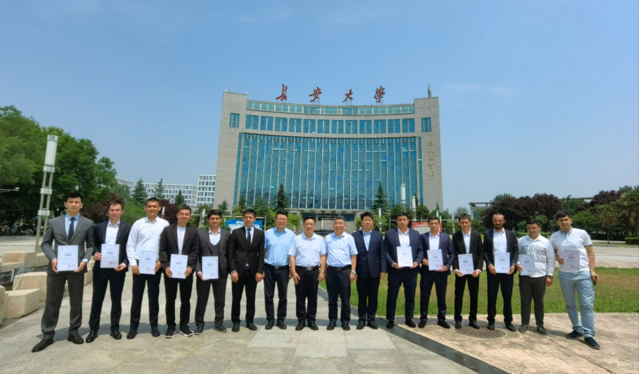 中國-中亞五國交通基礎設施領域高級技術官員培訓班(第一期)由長安大學、中國-中亞五國交通基礎設施領域人才培養聯盟秘書處組織開設,12名參訓學員來自聯盟理事會成員單位——烏茲別克斯坦國家規劃設計院。培訓中,學員接受了系統的理論課程講授,走訪了陜西省公路學會、西安公路研究院有限公司、西安翻譯學院、陜西交通職業技術學院、西安鐵路職業技術學院等,實地考察陜西交控市政路橋集團在建項目、中歐班列長安號等。陜西省教育廳網站、中央廣電總臺國際在線、中國教育在線、中國網、中國日報等媒體關注報道此次培訓活動。