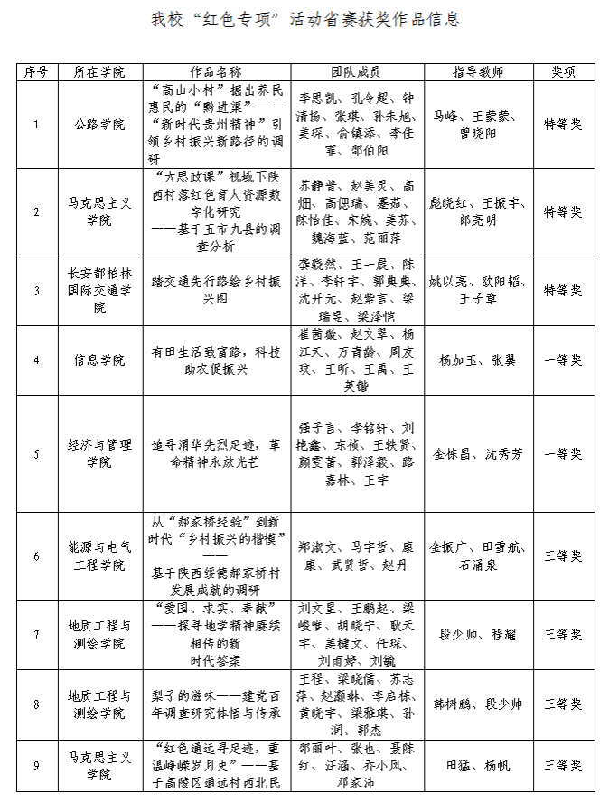 近日,第十八屆“挑戰杯”全國大學生課外學術科技作品競賽“紅色專項”活動陜西省賽結果公布,我校獲得特等獎3件、一等獎2件、三等獎4件,特等獎數全省第一、獲獎數全省第二。此外,學校在本屆競賽主賽道中4件作品入圍終審決賽、2件作品獲得三等獎,在“揭榜掛帥”專項賽中5件作品入圍復評。