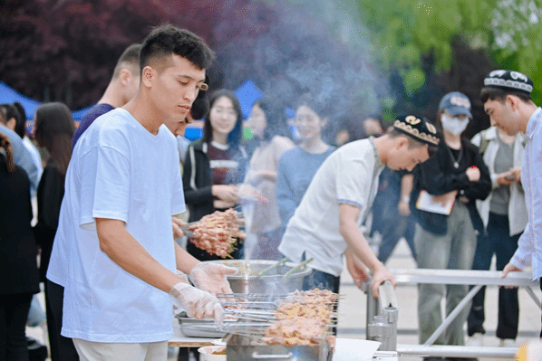 民族學(xué)生現(xiàn)場(chǎng)烤制羊肉