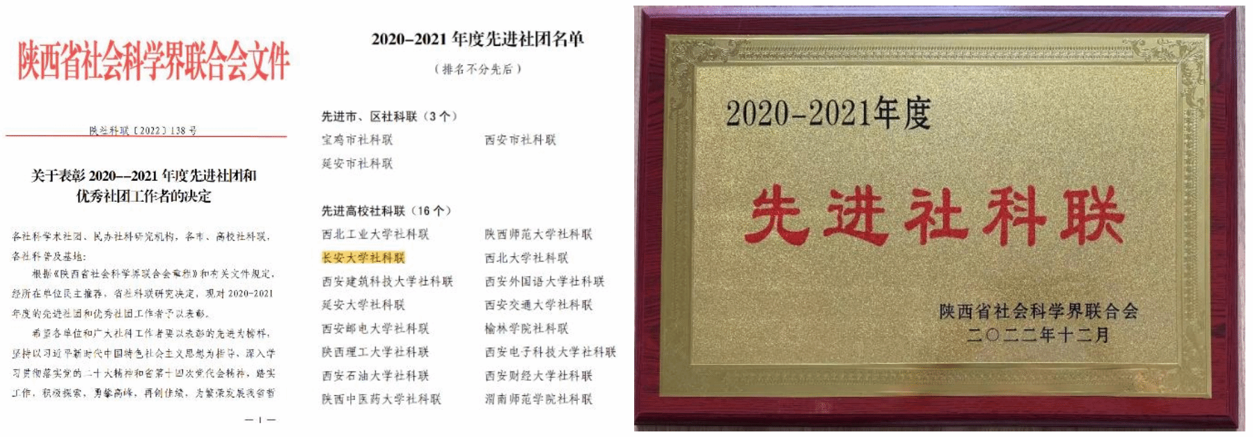 近日,根據(jù)陜西省社科聯(lián)《關(guān)于表彰2020-2021年度先進(jìn)社團(tuán)和優(yōu)秀社團(tuán)工作者的決定》,我校社科聯(lián)被授予“2020-2021年度先進(jìn)社科聯(lián)”榮譽(yù)稱號(hào)。該表彰每2年評(píng)選一次,本次全省共有16所高校榮獲表彰。