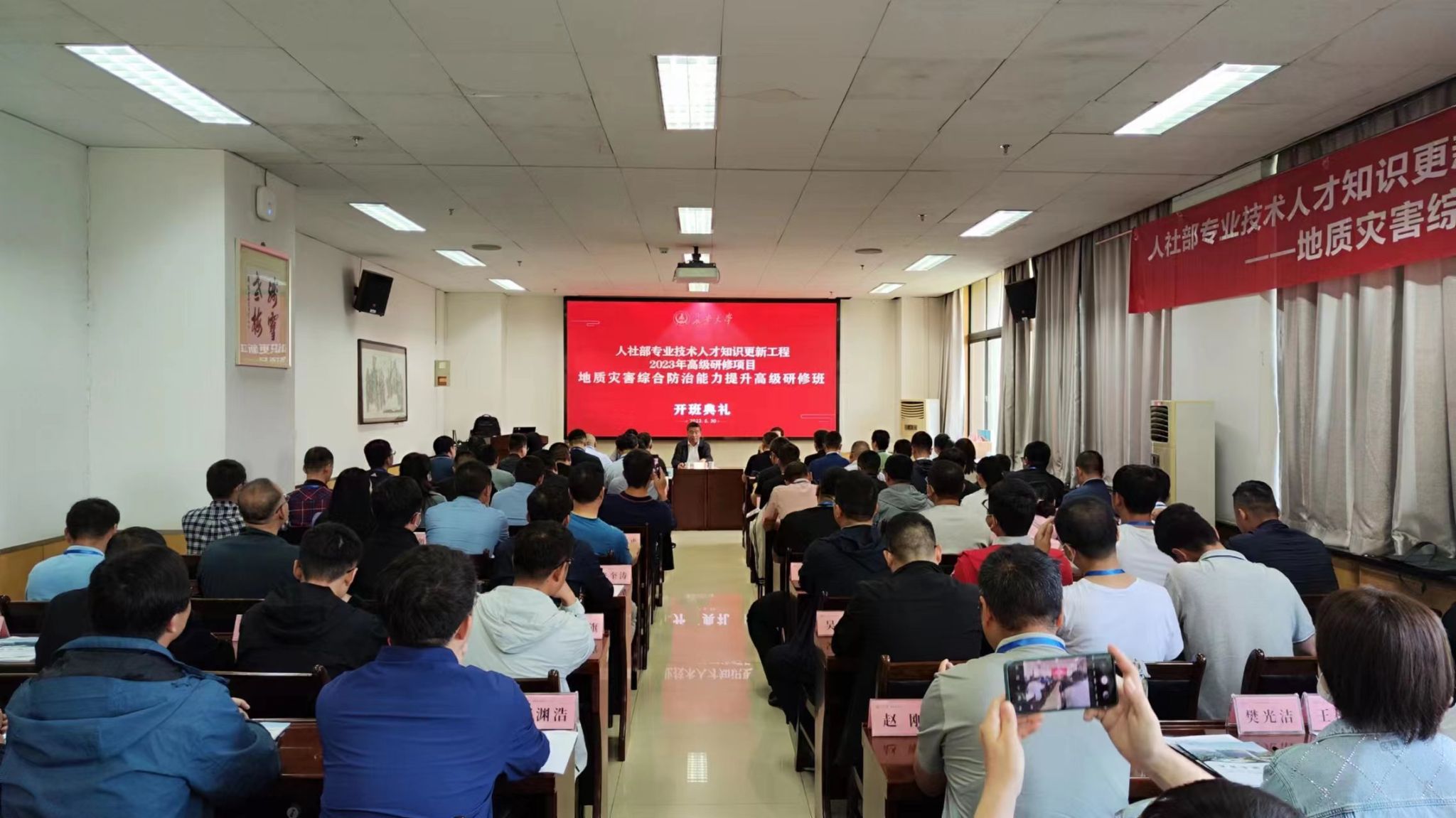 范文致開班辭,向參加本次研修項目的全體學(xué)員表示熱烈的歡迎并簡要介紹了長安大學(xué)近年來的發(fā)展及在地質(zhì)學(xué)科領(lǐng)域的辦學(xué)成果。他表示,專業(yè)技術(shù)人才知識更新工程高級研修項目是培養(yǎng)高層次急需緊缺人才的重要抓手,我們學(xué)校能夠舉辦本次培訓(xùn)意義重大、使命光榮。本次研修項目旨在提高相關(guān)領(lǐng)域?qū)I(yè)技術(shù)人員專業(yè)素質(zhì)、提升防災(zāi)減災(zāi)救災(zāi)能力,為經(jīng)濟社會高質(zhì)量發(fā)展提供堅強地質(zhì)安全保障。希望各位學(xué)員能夠?qū)W(xué)、思、悟、行相結(jié)合,以知促行,加強自身的業(yè)務(wù)素養(yǎng)和水平。