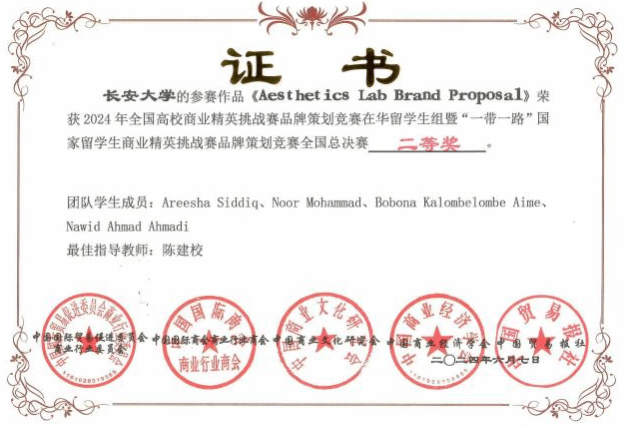 6月5日至6月7日,2024年全國高校商業精英挑戰賽品牌策劃競賽在華留學生組暨“一帶一路”國家留學生商業精英挑戰賽品牌策劃競賽全國總決賽在北京舉辦。在我校國際教育學院的大力支持下,經濟與管理學院工商管理專業留學生組成的團隊Aesthetics Lab Team榮獲全國總決賽二等獎,并成功入圍2024年7月在新加坡舉行的全球品牌策劃大賽全球總決賽。