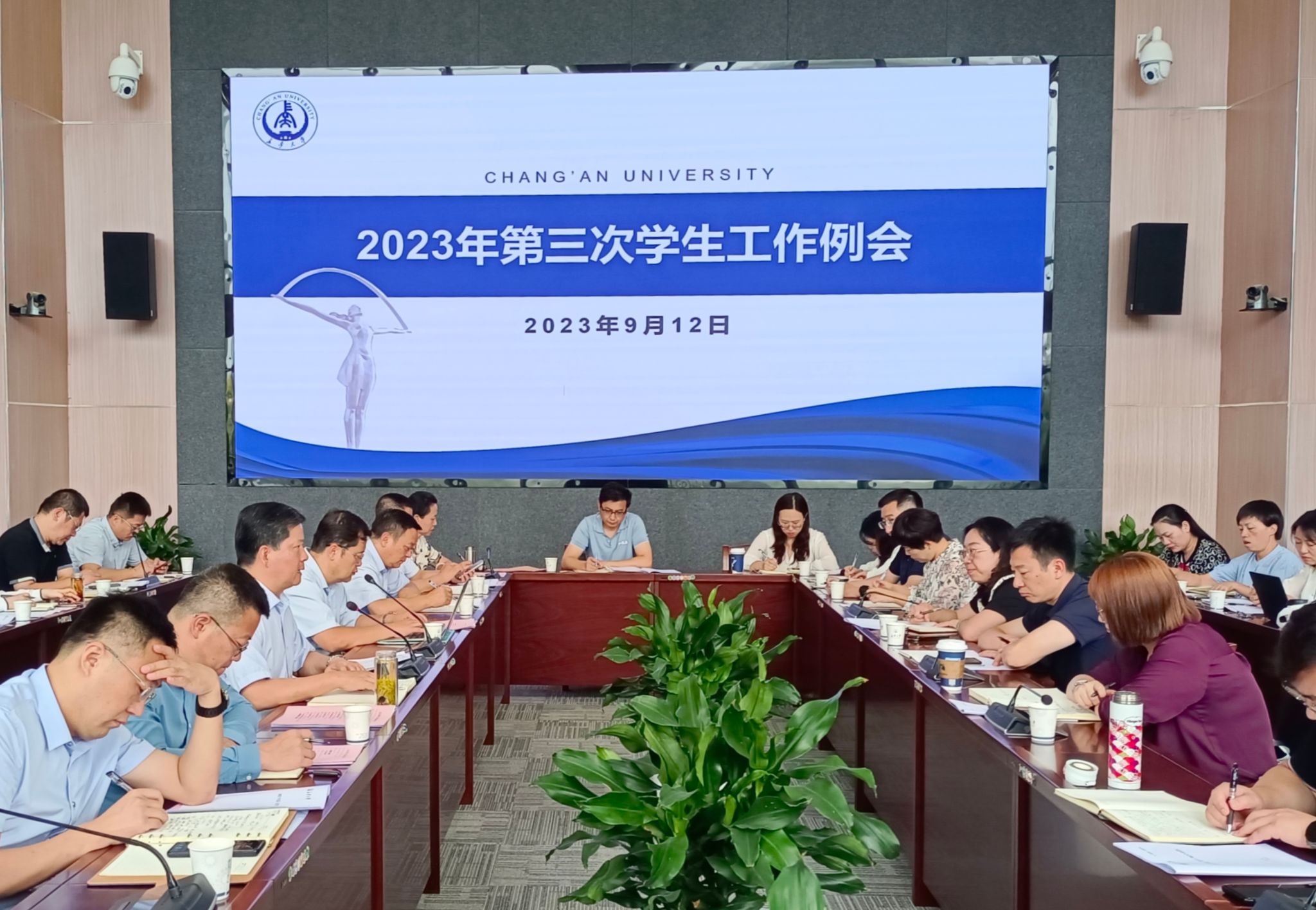 學工部/武裝部、研工部全體處級干部,校長辦公室、教務處、招就處、保衛處、后勤處、校團委、南校區辦、黨校相關負責人,各學院(系)主管學生工作院領導參加會議。