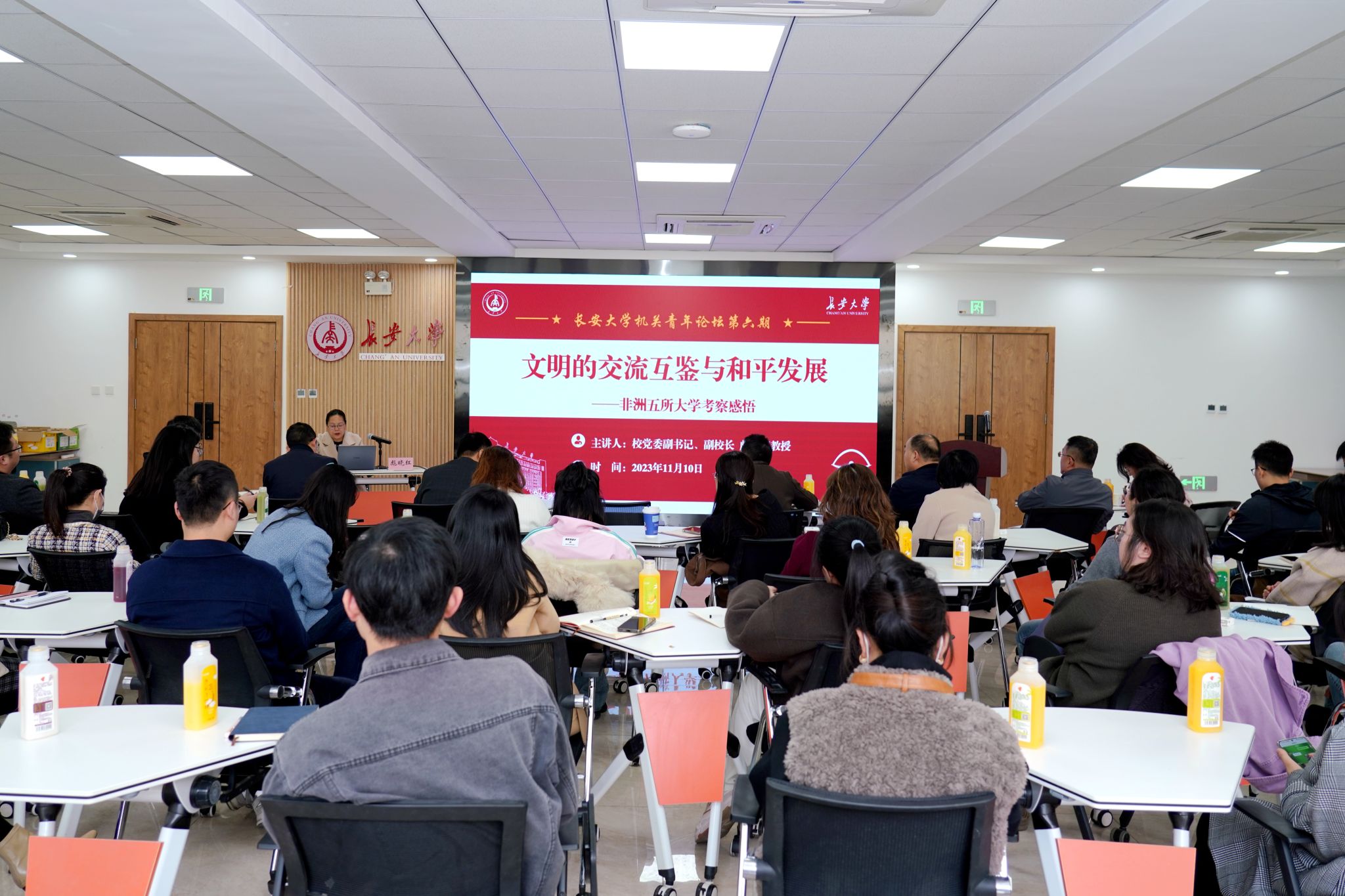 彪曉紅以“文明的交流互鑒與和平發展——非洲五所大學考察感悟”為題作專題報告,分享了率團參加中國高等教育展并訪問加納、埃及兩國高等院校的所見所思所感。她通過中華文明與古埃及文明的對比分析,強調我們要堅定文化自信,不斷增強自信心和自豪感,以更加開放的姿態面向世界開放發展,不斷開拓國際育人視野,充分發揮我校辦學特色和優勢學科的育人優勢,秉承開放發展理念,著力解答“教育強國長大何為”的長大之問,奮力助推學校高質量發展,為構建人類命運共同體貢獻長大教育力量。彪曉紅指出,文明因多樣而交流,因交流而互鑒,因互鑒而發展。作為機關青年干部,要不忘初心使命、勇于擔當作為,不斷加強交流學習,在交流實踐鍛煉中練就本領,通過互相學習、互相借鑒,不斷拓展自己的視野和知識面,提高綜合素質和能力水平,為學?!半p一流”建設貢獻自己的智慧和力量。