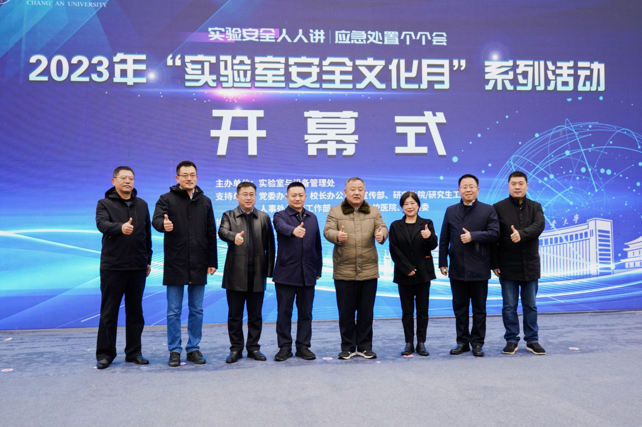 為進一步落實教育部《高等學校實驗室安全規范》,按照“全員、全面、全程”的要求開展實驗室安全教育,提升師生實驗安全防范意識和應急能力,推動安全教育入腦入心,建設有特色的實驗室安全文化。11月11日上午,長安大學2023年實驗室安全文化月系列活動開幕式在渭水校區舉行。我校副校長陳建勛出席開幕式并致辭。陜西省高等教育學會實驗室管理工作委員會副理事長、西安交通大學實驗室管理處處長朱臻,副理事長、西安電子科技大學實驗室與設備處處長韓卿,長安大學黨委辦公室、校長辦公室主要負責人,校實驗室安全工作領導小組成員單位負責人參加開幕式。開幕式現場同時設置實驗室應急處置實操、模擬傷害體驗、裝備展示體驗、知識闖關競答等多項實訓體驗環節,當天共有3000余名師生現場參與活動。