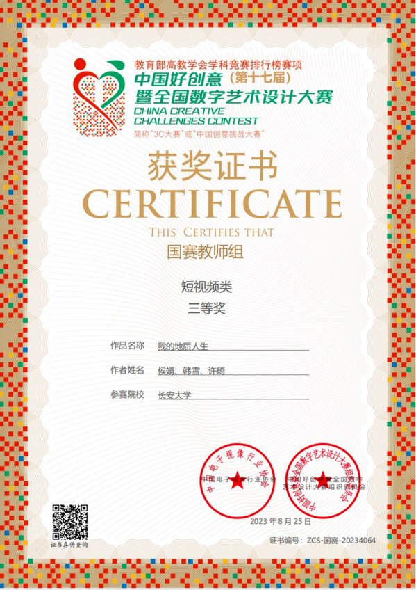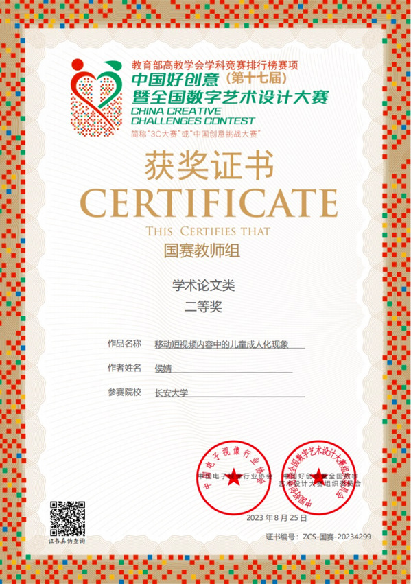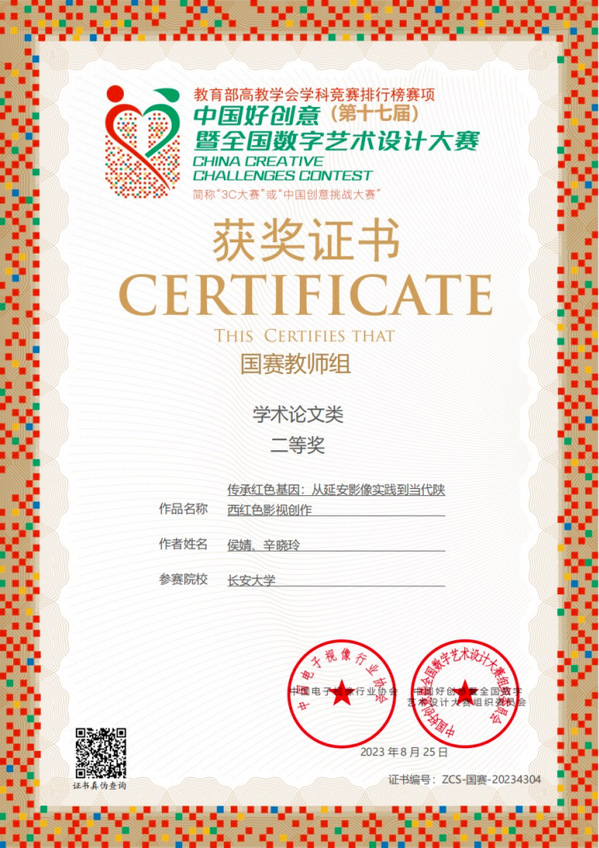 近日,第17屆中國好創(chuàng)意暨全國數(shù)字藝術(shù)設(shè)計(jì)大賽落下帷幕,人文學(xué)院廣播影視系教師侯婧撰寫的論文《移動(dòng)短視頻內(nèi)容中的兒童成人化現(xiàn)象》獲教師組學(xué)術(shù)論文類國賽二等獎(jiǎng);侯婧、辛?xí)粤岷献髡撐摹秱鞒屑t色基因:從延安影像實(shí)踐到當(dāng)代陜西紅色影視創(chuàng)作》獲教師組學(xué)術(shù)論文類國賽二等獎(jiǎng);侯婧、韓雪、許琦創(chuàng)作的紀(jì)錄片《我的地質(zhì)人生》獲得短視頻類國賽三等獎(jiǎng)。這是我校教師首次在該賽事中榮獲國家級獎(jiǎng)項(xiàng)。