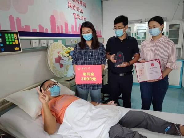 當天上午,校團委、建工學院負責人等前往醫院看望慰問了鐘磬凌同學,對他樂于助人、無私奉獻的高尚品質和愛心善舉給予高度贊揚和充分肯定,并代表學校、學院送上慰問金。陜西省紅十字協會工作人員為鐘磬凌同學頒發了“中國造血干細胞資料庫陜西分庫愛心使者”和“捐獻造血干細胞”榮譽證書。