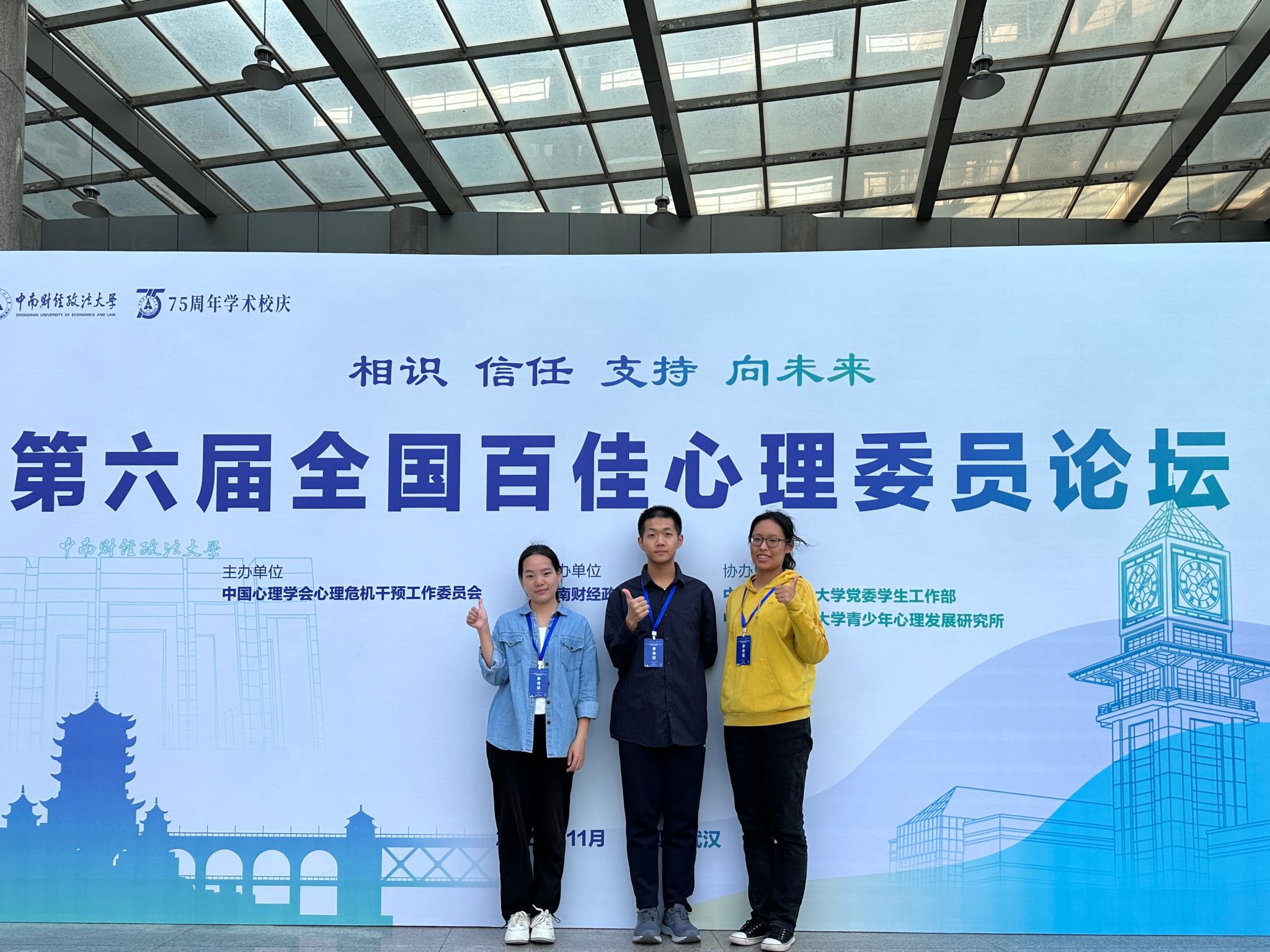 近日,第十八屆全國高校心理委員工作研討會暨朋輩輔導論壇、第六屆全國百佳心理委員論壇在中南財經政法大學召開,會議進行了第六屆“全國百佳心理委員”評選。我校都柏林國際交通學院李思哲榮獲第六屆“全國百佳心理委員”榮譽稱號,建筑學院王靜宜、地測學院廖能榮獲第六屆“全國百佳心理委員”提名獎。李思哲作為代表在大會上發言。