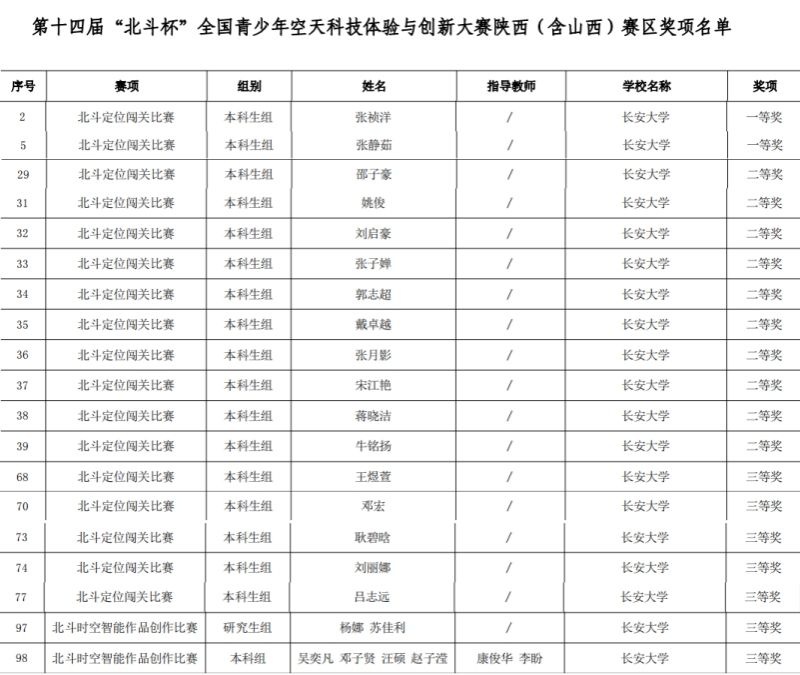 第十四屆“北斗杯”陜西(含山西)賽區省賽長安大學獲獎情況(部分)