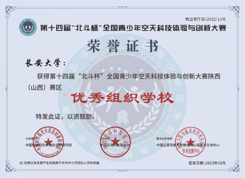 長安大學榮獲第十四屆“北斗杯”陜西(山西)賽區“優秀組織學校”