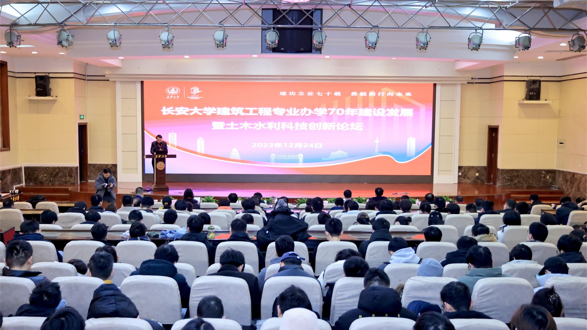 12月24日上午,長安大學建筑工程專業辦學70年暨土木水利科技創新論壇在南校區學術交流中心報告廳舉行。校黨委副書記、紀委書記陶繼東出席論壇。青島理工大學副校長金祖權教授、重慶大學鋼結構工程研究中心副主任劉界鵬教授、中國建筑科學研究院有限公司陳凱研究員、中冶建筑研究總院有限公司榮華教授級高工、西安建筑科技大學陳榮教授、西安理工大學郭鵬程教授、中南大學國巍教授、長安大學羅彥斌教授,及學校師生近300人參加論壇。論壇由建筑工程學院邢國華教授和重慶大學劉界鵬教授主持。