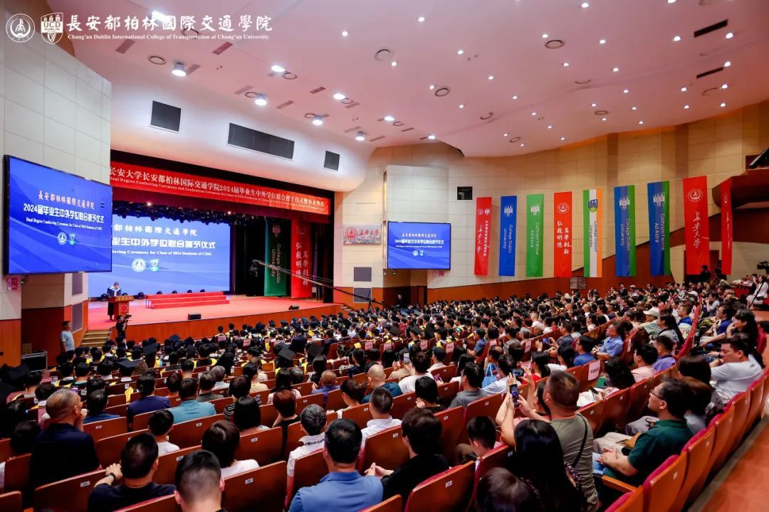 在中外雙方共同見證下,杜強和Colin Scott分別宣讀了長安大學、都柏林大學學位授予決議。范文和Colin Scott分別授予2024屆畢業生中外雙方學士學位。