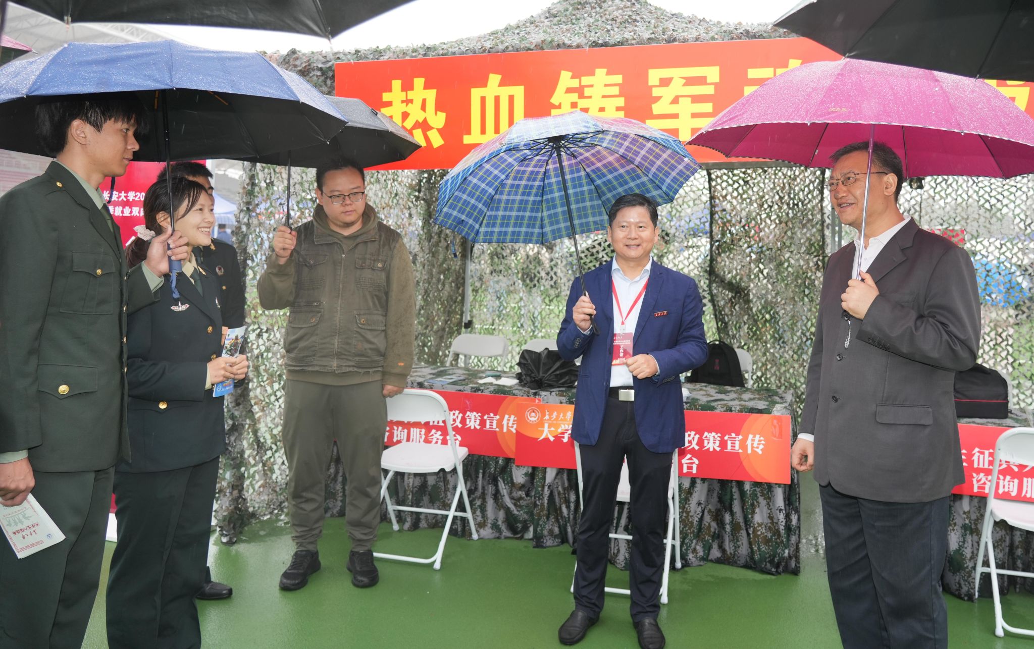 校黨委書記陳志堅、校黨委副書記黎開誼親切慰問了退役大學生弘毅中隊,并與其進行深入交流。陳志堅指出,國防教育是高校落實立德樹人根本任務和強軍目標根本要求的重要組成部分,是培養青年學生愛國情懷和責任感的重要途徑。他強調,大學生應大力弘揚愛國主義精神,把個人理想追求融入黨和國家事業之中,積極投身國防事業,為實現中華民族偉大復興的中國夢貢獻青春力量。