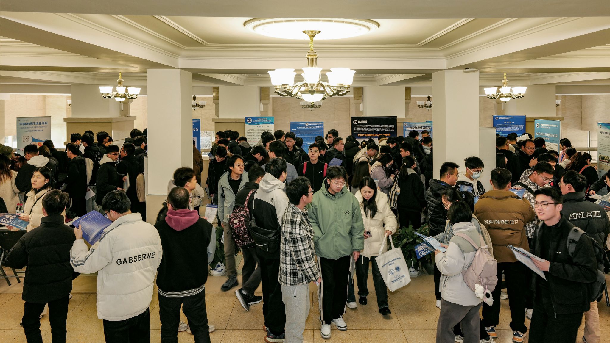 宣講會后,中國地質(zhì)調(diào)查局局屬29家事業(yè)單位開展了現(xiàn)場招聘交流活動,我校300余名師生代表參加招聘會。招生就業(yè)處、公路學院、經(jīng)管學院、地測學院、建工學院、水環(huán)學院、土地學院相關(guān)負責人參加活動。