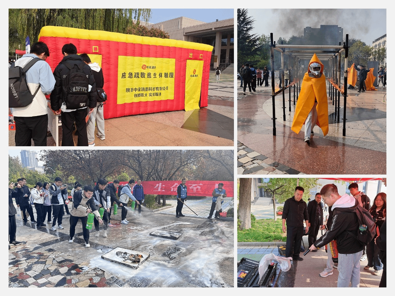 寓教于樂,舉辦安全實訓線下演練。為有效提升廣大師生員工的消防安全意識和應急自救能力,于11月8日在北校區舉辦了“119”消防宣傳月安全實訓線下演練現場活動,現場設置了海姆立克急救法、安全繩結、煙道逃生氣模體驗、穿越火線逃生體驗、模擬滅火實訓、實火演練6項消防安全實訓體驗活動,還布置了大量消防安全宣傳展板,讓師生在輕松愉悅的游戲體驗中掌握了撲救初起火災和火場疏散逃生的基本方法,活動現場氣氛熱烈,師生們積極參與,紛紛表示通過此次活動受益匪淺。