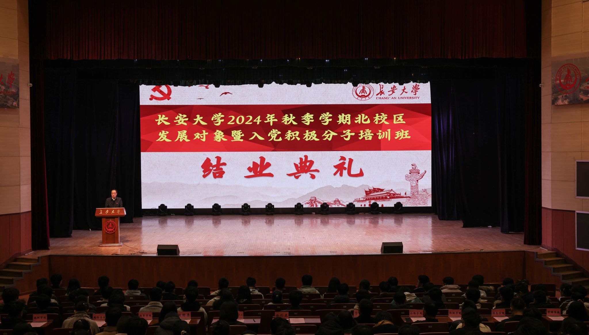 12月10日晚,長安大學2024年秋季學期北校區發展對象暨入黨積極分子培訓班結業典禮在長安文化藝術中心大禮堂舉行。校黨委副書記、黨校校長徐引正出席典禮并講話。典禮由黨校常務副校長、組織部副部長閆妍主持。