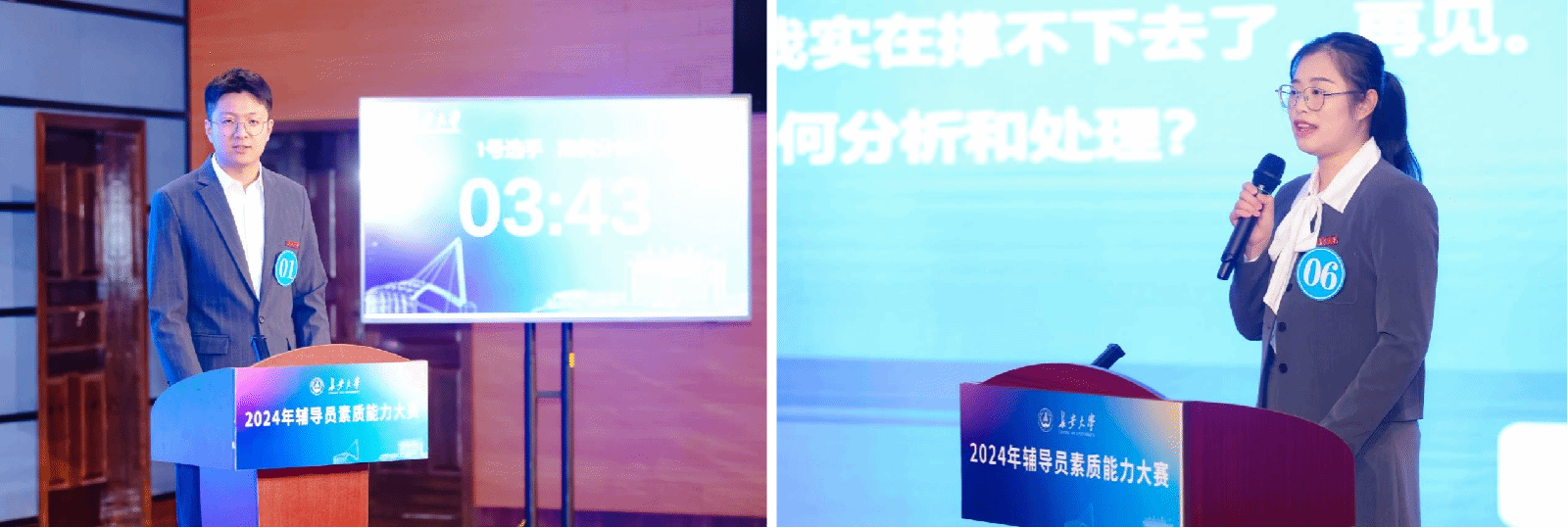 2024年輔導員素質能力提升訓練營歷時兩個月,包括輔導員素質能力考核和輔導員素質能力大賽兩部分。在輔導員素質能力考核的我認我生、基礎知識測試、思政公開課、教育典型案例、學生滿意度測評等環節中,成績優秀的20名選手進入輔導員素質能力大賽。大賽分為談心談話和案例分析,經過談心談話環節的激烈角逐,最終10名選手進入決賽案例分析環節。