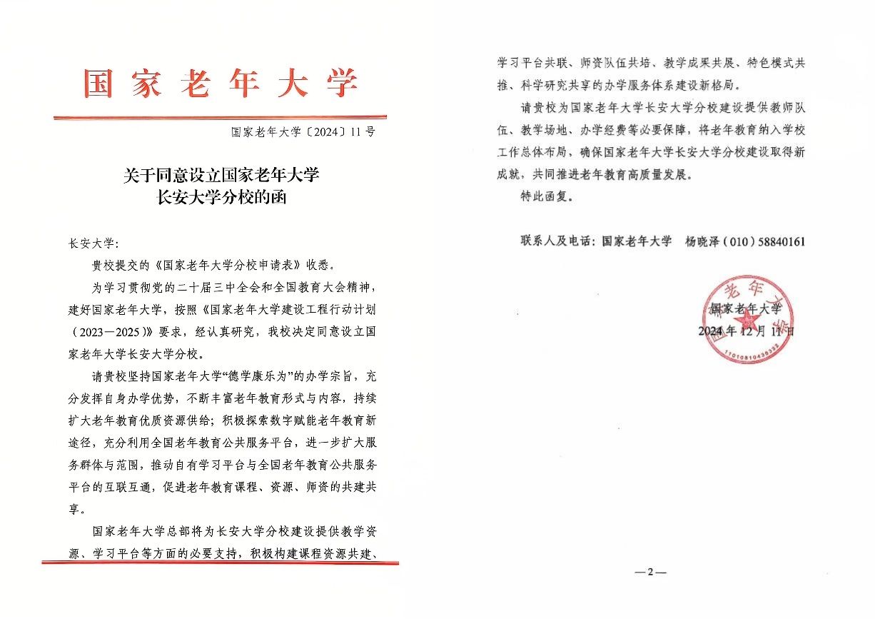 近日,我校正式獲批設立國家老年大學長安大學分校,這是對我校老年教育事業(yè)的充分肯定,也標志著我校在融入國家全民終身學習服務體系邁出了重要一步,走向新的階段。