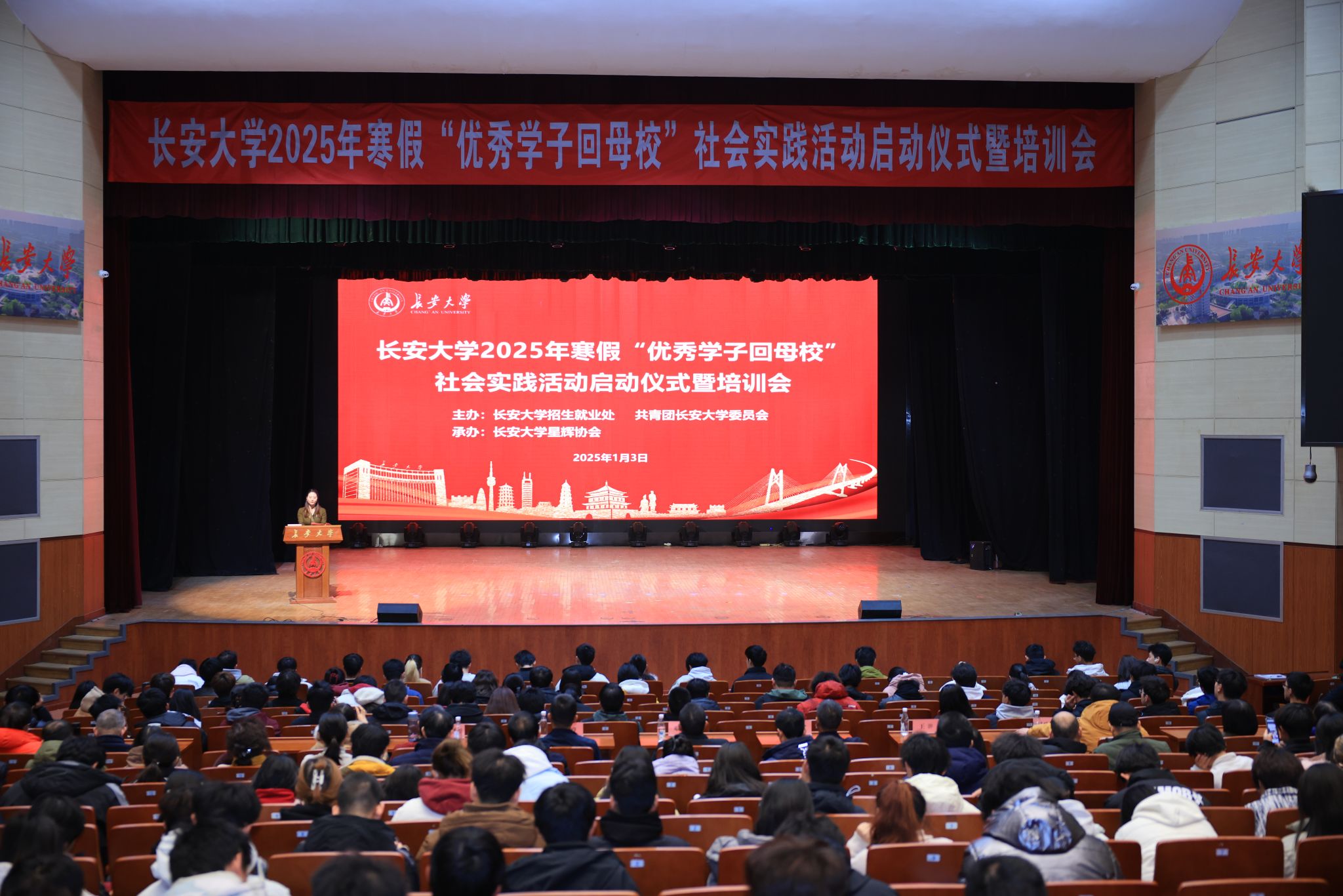 1月3日晚,長安大學2025年寒假“優秀學子回母校”社會實踐活動啟動儀式暨培訓會在長安文化藝術中心大禮堂舉行。招生就業處處長鄧紅章、武裝部副部長王恩成、校團委副書記常睿,招生辦公室全體干部、第四屆招生專員以及1000余名學生代表參加活動。大會由招生就業處副處長、招生辦公室主任王翀主持。