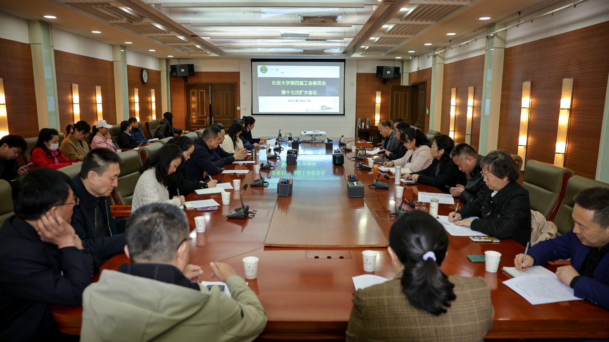 3月27日下午,長安大學第四屆工會委員會第十七次擴大會議在北校區北辰樓會議中心第二會議室召開。第四屆工會委員會委員,分會主席、分會負責人,以及部分獲得榮譽的集體和個人代表參加會議。會議由工會主席王衛主持。