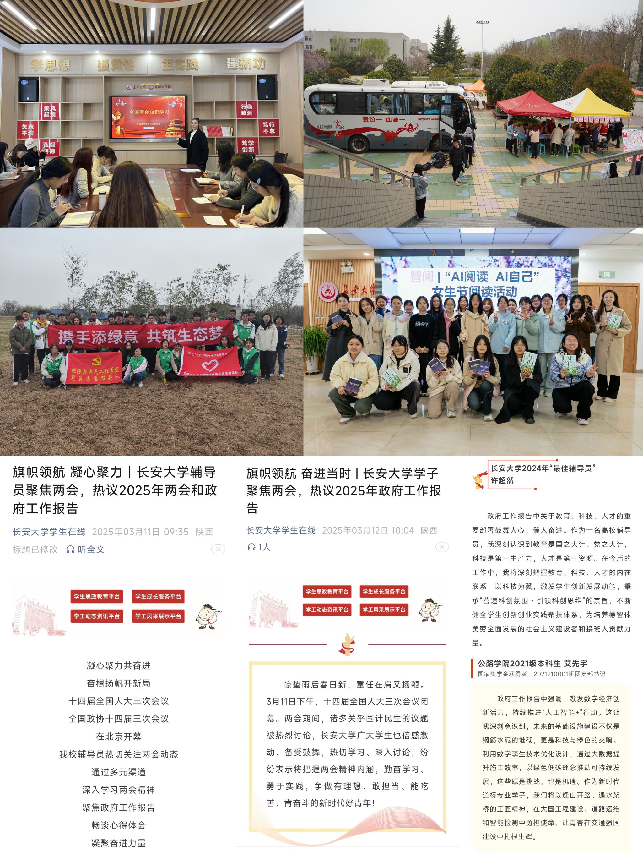 堅(jiān)持以理想信念教育為重點(diǎn),教育引導(dǎo)學(xué)生把穩(wěn)思想之舵。堅(jiān)持用習(xí)近平新時(shí)代中國特色社會(huì)主義思想鑄魂育人,圍繞學(xué)習(xí)貫徹習(xí)近平總書記在全國教育大會(huì)、新春團(tuán)拜會(huì)等會(huì)議上的重要講話精神以及《教育強(qiáng)國建設(shè)規(guī)劃綱要(2024-2035年)》等,講清形勢、講活成就、講明部署,組織學(xué)生深學(xué)熱議2025年全國兩會(huì)精神,開展“金句解讀+模擬提案”等活動(dòng),引導(dǎo)學(xué)生立報(bào)國強(qiáng)國大志向、做挺膺擔(dān)當(dāng)奮斗者。堅(jiān)持全員育人,學(xué)院(系)領(lǐng)導(dǎo)、輔導(dǎo)員、班主任等通過周見面/晚點(diǎn)名和進(jìn)課堂、進(jìn)班級、進(jìn)宿舍等方式深入學(xué)生中上好“開學(xué)第一課”;指導(dǎo)學(xué)院(系)依托“一站式”學(xué)生社區(qū)建設(shè),深入開展“書記面對面”“院長下午茶”“教授講專業(yè)”“校友話成長”等品牌活動(dòng)。緊抓關(guān)鍵節(jié)點(diǎn),以學(xué)雷鋒紀(jì)念日、植樹節(jié)等為契機(jī),積極開展“愛我國防”大學(xué)生演講比賽、“熱血遞溫情,點(diǎn)滴聚愛心”獻(xiàn)血車進(jìn)校園等主題鮮明、內(nèi)涵豐富、形式多樣的主題教育、志愿服務(wù)和社會(huì)實(shí)踐活動(dòng),引導(dǎo)廣大學(xué)生做社會(huì)主義核心價(jià)值觀的堅(jiān)定信仰者、積極傳播者、模范踐行者。